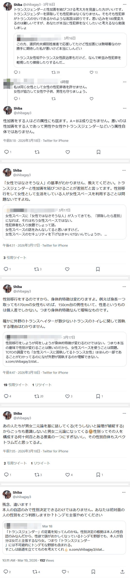 トランスジェンダーと性加害を結びつける考え方を見直した方がいいです。トランスジェンダーを排除しても性犯罪はなくなりません。そもそも性犯罪がトランスのせいであるかのような言説は誤りです。思い込みを180度変えるのは難しいですがあなたが本当に性犯罪をなくしたいと考えるなら勉強しましょ(2026年3月16日)